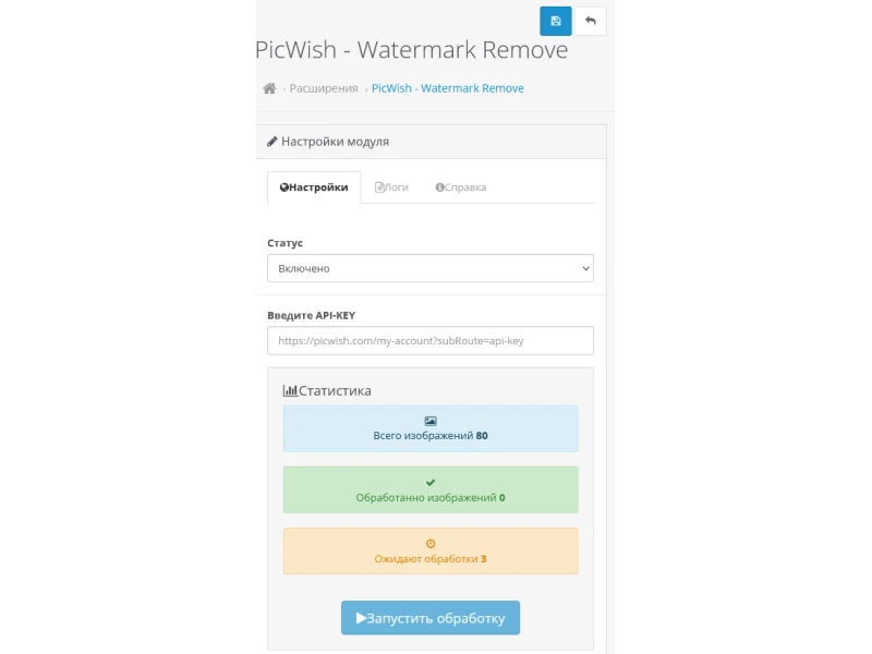 Модуль является связующим звеном между OpenCart и API PicWish. Мы не являемся владельцами сервиса PicWish и не контролируем стоимость их кредитов.